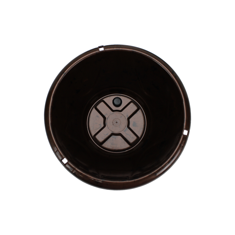Seu acabamento é liso e em alto brilho; sua borda tem três perfurações com a finalidade de engate da haste, oferecendo mais segurança, resistência e sofisticação ao pendurar suas plantas.