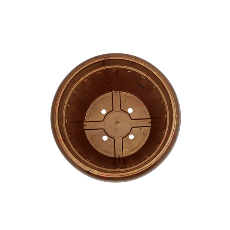 Possui 4 saídas de água. Sua base interna foi desenhada para que as raízes não bloqueiem o escoamento da água, evitando com que elas apodreçam. Seu acabamento é texturizado, liso e brilhoso, contendo uma borda grande e abaulada que oferece facilidade em seu manuseio.