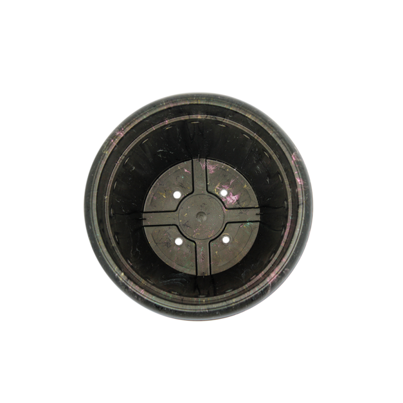 Possui 4 saídas de água. Sua base interna foi desenhada para que as raízes não bloqueiem o escoamento da água, evitando com que elas apodreçam. Seu acabamento é texturizado, liso e brilhoso, contendo uma borda grande e abaulada que oferece facilidade em seu manuseio.