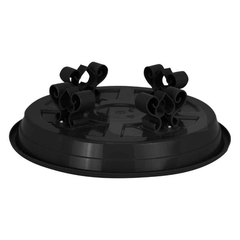 Esse item conta com 4 suportes resistentes que são aparafusados em sua base externa para manter o prato elevado do chão, trazendo um charme diferente ao seu vaso. Possui também um relevo em sua base interna que contribui para o escoamento do excesso de água, além de desenhos internos para complementar a decoração.