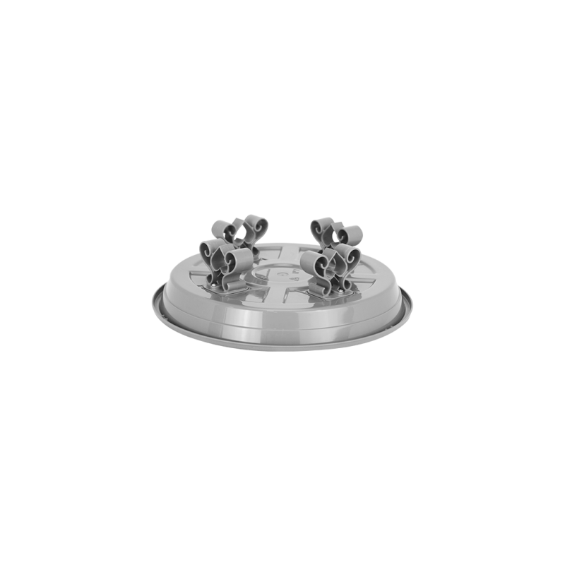 Esse item conta com 4 suportes resistentes que são aparafusados em sua base externa para manter o prato elevado do chão, trazendo um charme diferente ao seu vaso. Possui também um relevo em sua base interna que contribui para o escoamento do excesso de água, além de desenhos internos para complementar a decoração.
