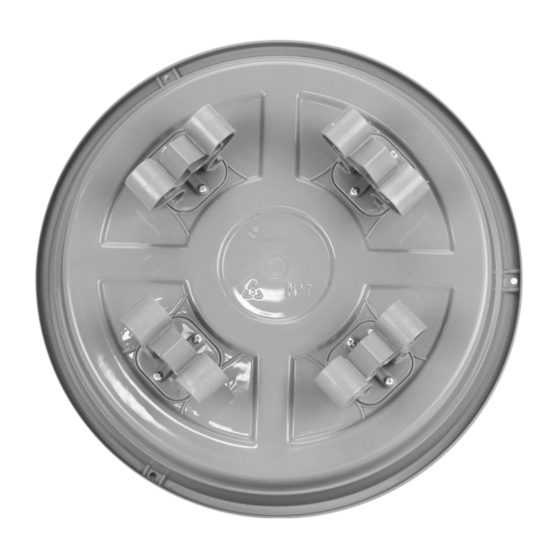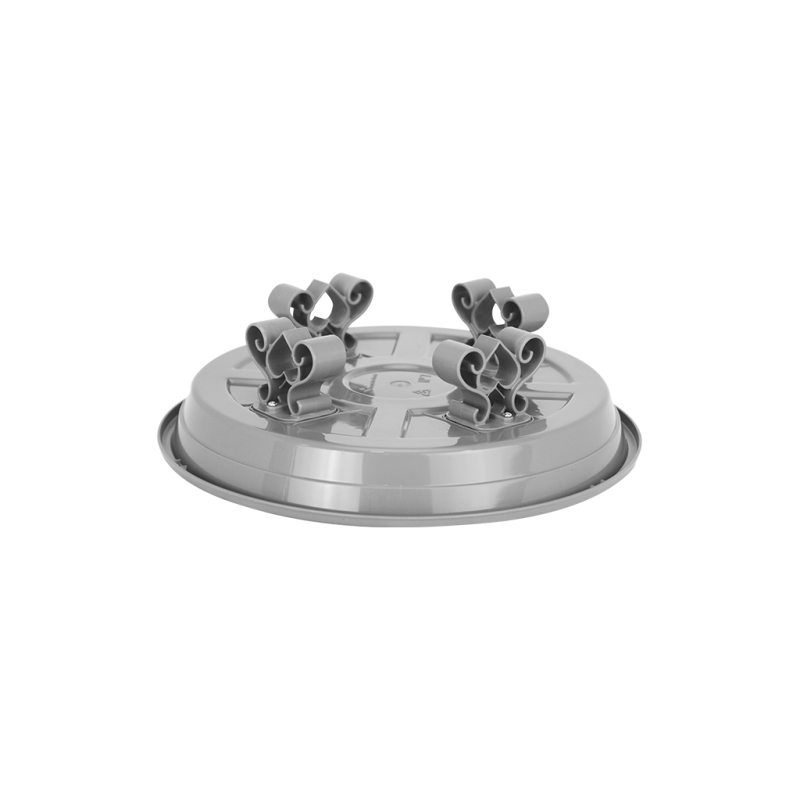 Esse item conta com 4 suportes resistentes que são aparafusados em sua base externa para manter o prato elevado do chão, trazendo um charme diferente ao seu vaso. Possui também um relevo em sua base interna que contribui para o escoamento do excesso de água, além de desenhos internos para complementar a decoração.