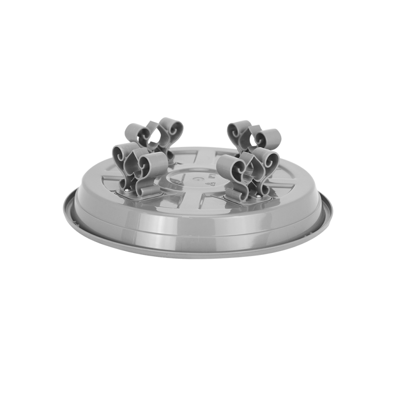 Esse item conta com 4 suportes resistentes que são aparafusados em sua base externa para manter o prato elevado do chão, trazendo um charme diferente ao seu vaso. Possui também um relevo em sua base interna que contribui para o escoamento do excesso de água, além de desenhos internos para complementar a decoração.
