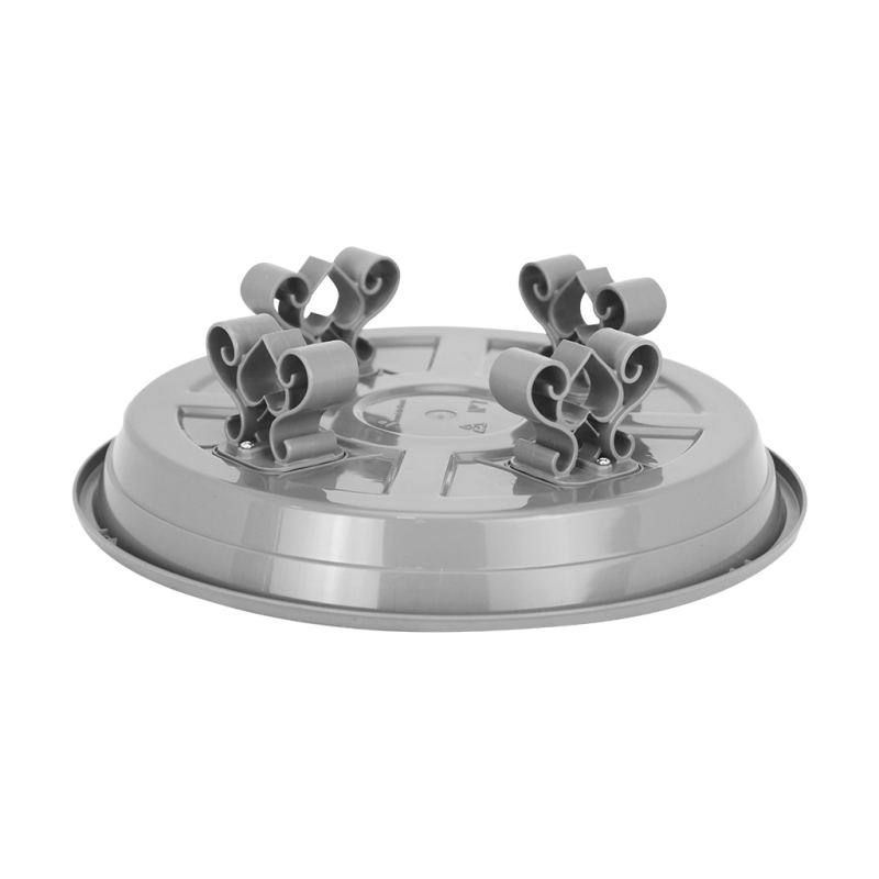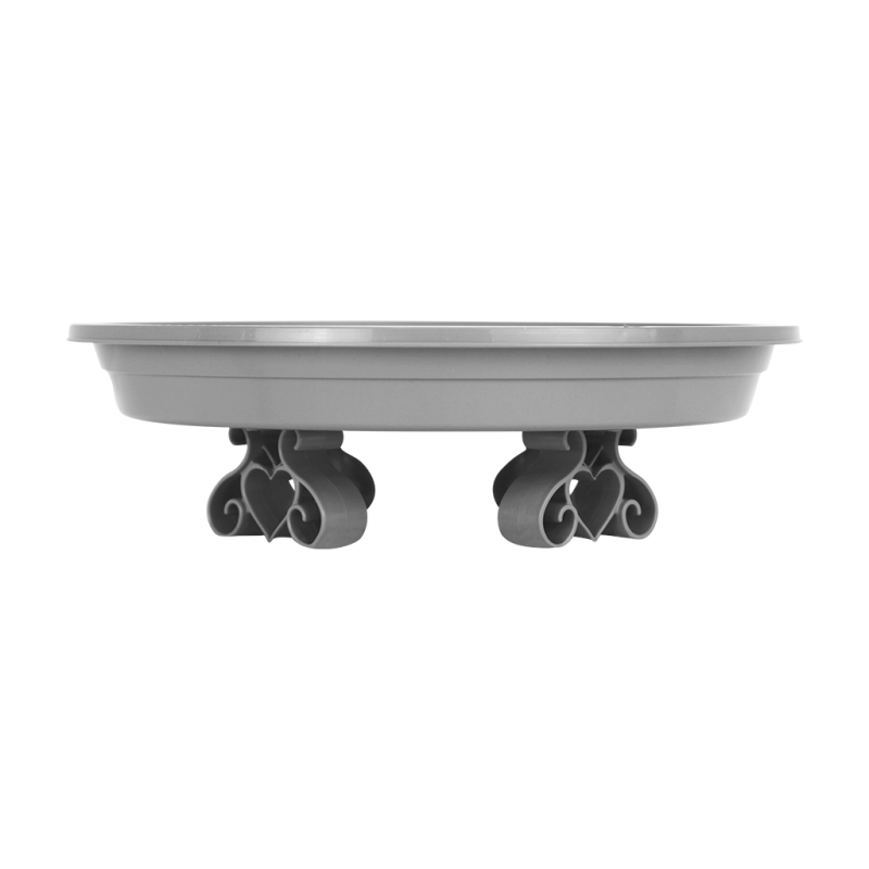 Esse item conta com 4 suportes resistentes que são aparafusados em sua base externa para manter o prato elevado do chão, trazendo um charme diferente ao seu vaso. Possui também um relevo em sua base interna que contribui para o escoamento do excesso de água, além de desenhos internos para complementar a decoração.