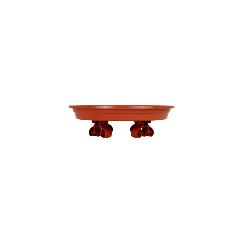 Esse item conta com 4 suportes resistentes que são aparafusados em sua base externa para manter o prato elevado do chão, trazendo um charme diferente ao seu vaso. Possui também um relevo em sua base interna que contribui para o escoamento do excesso de água, além de desenhos internos para complementar a decoração.