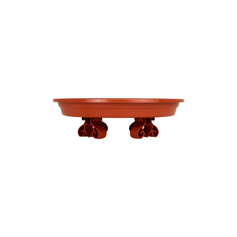 Esse item conta com 4 suportes resistentes que são aparafusados em sua base externa para manter o prato elevado do chão, trazendo um charme diferente ao seu vaso. Possui também um relevo em sua base interna que contribui para o escoamento do excesso de água, além de desenhos internos para complementar a decoração.