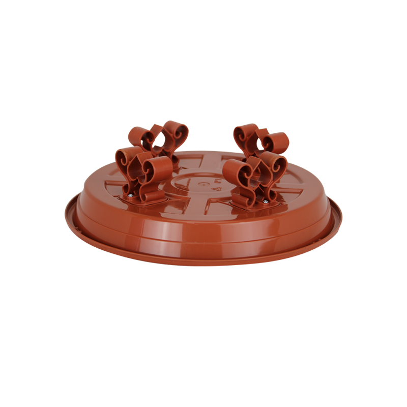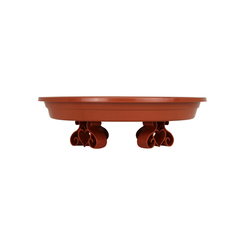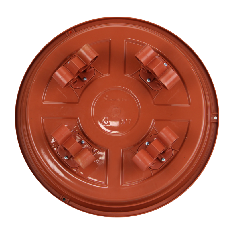 Esse item conta com 4 suportes resistentes que são aparafusados em sua base externa para manter o prato elevado do chão, trazendo um charme diferente ao seu vaso. Possui também um relevo em sua base interna que contribui para o escoamento do excesso de água, além de desenhos internos para complementar a decoração.