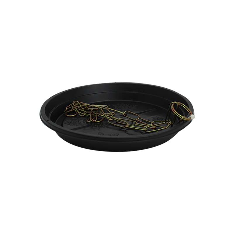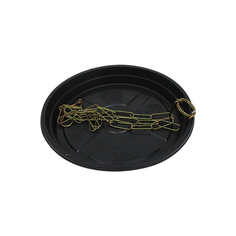 O modelo é simples e prático. Possui acabamento liso e brilhoso e uma borda com perfurações projetadas para a corrente. Conta com relevo em sua base interna que contribui para o escoamento do excesso de água.