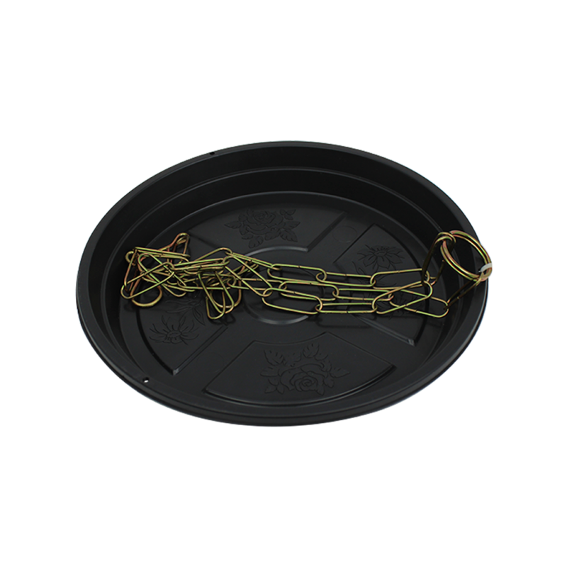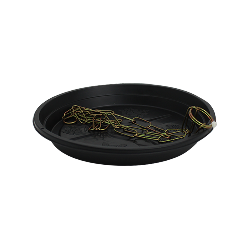 O modelo é simples e prático. Possui acabamento liso e brilhoso e uma borda com perfurações projetadas para a corrente. Conta com relevo em sua base interna que contribui para o escoamento do excesso de água.