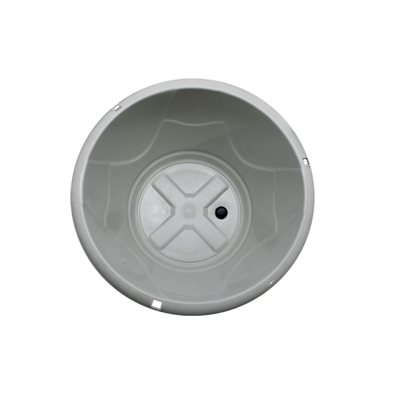 Seu acabamento é liso e brilhoso, com borda abaulada e perfurada para o engate da haste ou corrente, oferecendo mais segurança e resistência ao pendurar suas plantas. Além de uma saída de água controlada por uma tampa removível, colaborando para que a água seja despejada em local apropriado quando necessário, ajudando na limpeza do ambiente.