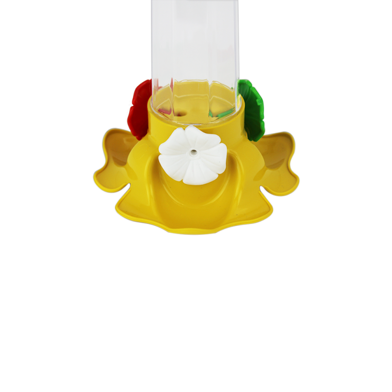 Esse item possui três saídas de água em formato de flores coloridas. Possui um copo poligonal e transparente que possibilita a visualização do líquido disponibilizado aos pássaros, além de um gancho super resistente, prontíssimo para ser pendurado no local que você desejar! É um modelo que contém uma base avantajada para que os pássaros possam pousar e se alimentar de uma forma mais confortável.