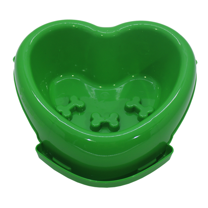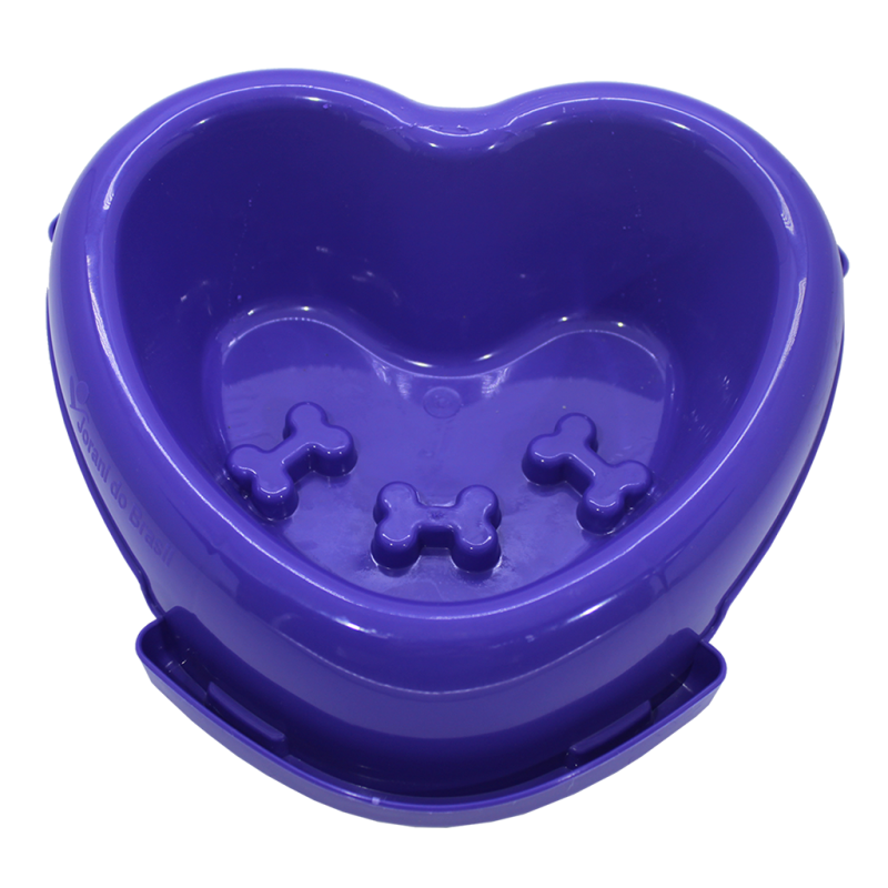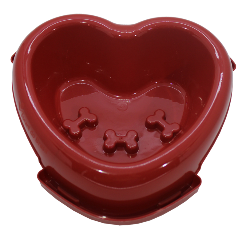 O Tratador Coração possui acabamento liso e brilhante, além de dispor de um fundo reforçado e com relevo em formato de ossinho que auxilia no controle da ansiedade durante a alimentação do seu pet.