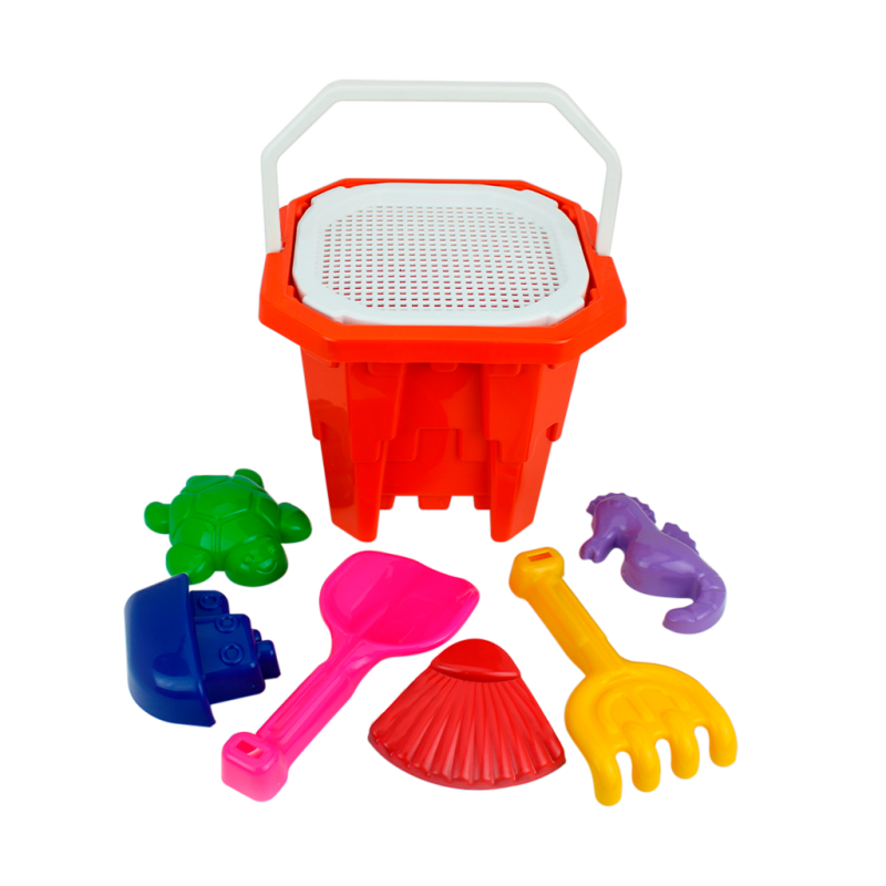 Seu formato quadrado em castelo desenvolve a imaginação e a criatividade da criança, e juntamente com seus acessórios, tornam-se tudo que é necessário para se divertir na praia!