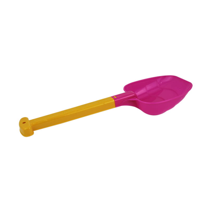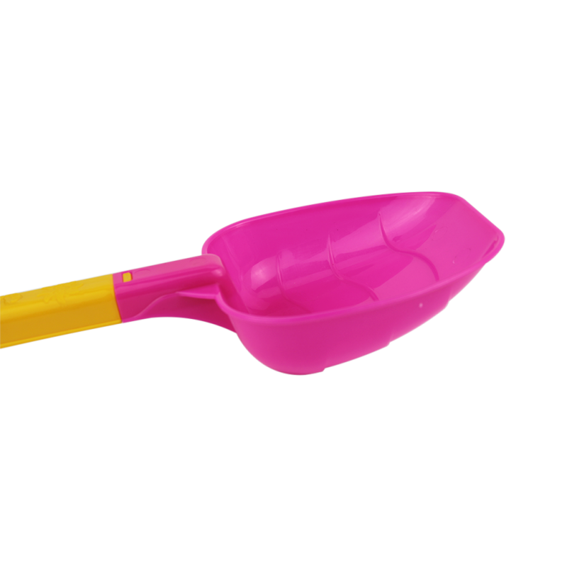 Com um design extremamente chamativo, acabamento liso, brilhoso e desenhos em alto relevo no cabo com cores vibrantes, a pá possui uma concavidade com 3 linhas em alto relevo no centro da mesma, para impedir o deslize da areia/terra e garantir a diversão! Além de possuir um apoio na ponta, para facilitar a forma em que a criança pode segura-lo.